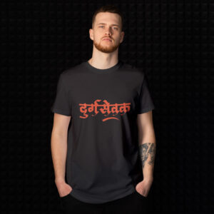 Available in classic black and white, the दुर्गसेवक design symbolizes strength, service, and swabhimaan (self-respect).